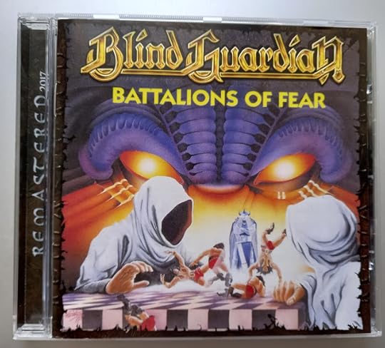 The debut album by German speed/power metal band Blind Guardian, 'Battalions of Fear', released in 1987. There are evil themes on this and my copy has a bonus track, 'Halloween (The Wizard's Crown)'.