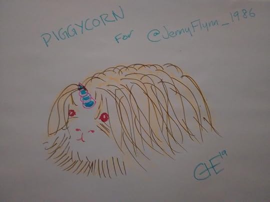 We had a lot of correct answers, and we will be working through and creating your mythical creatures, but below is the first correct answer, where we turned Jenny’s guinea pig into a “piggycorn”.