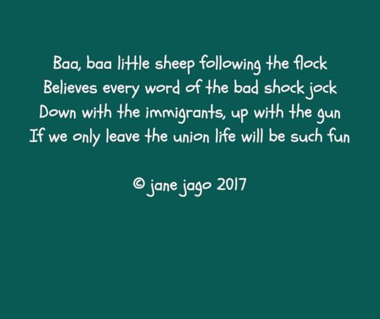 And this week’s Monday meme was this brilliant poem from the incomparable Jane Jago. Do check out her books if you get the chance.