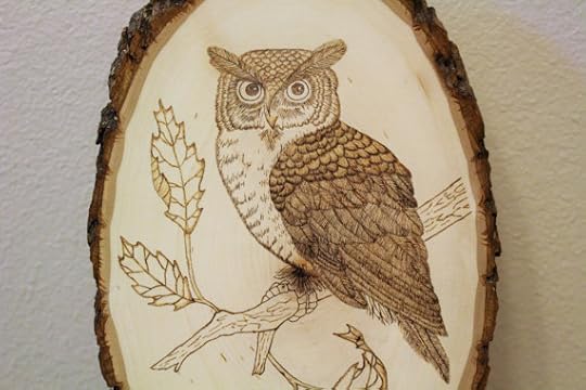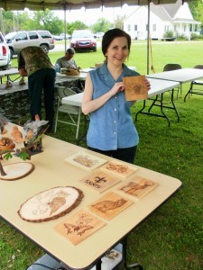 It’s actually a family business … my dad has been woodcarving for years, and when I got laid off about 1-1/2 years ago, he suggested that it might keep be busy while looking for another job. Well, I really like woodburning, or as it’s called in the trade – pyro art … I like that … it sounds so deviant! But I also sew, my mom taught me when I was young, and she used to make my clothes … then when I was older, I made my clothes for work.