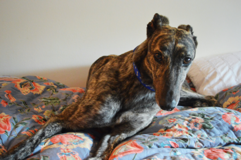 Hello, I’m Aline of chacharocks, the home of gorgeously kitsch canine couture accessories with a glitter-tastic twist. The handsome dog on my right is my adopted Greyhound, or possibly Lurcher, Ronnie.