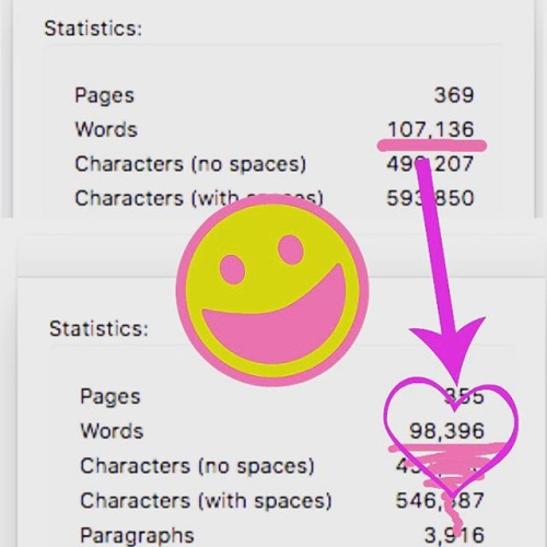 Word count from last draft of Pirate Book to the one I just turned in. ALMOST 10k WORDS CUT, GUYS.