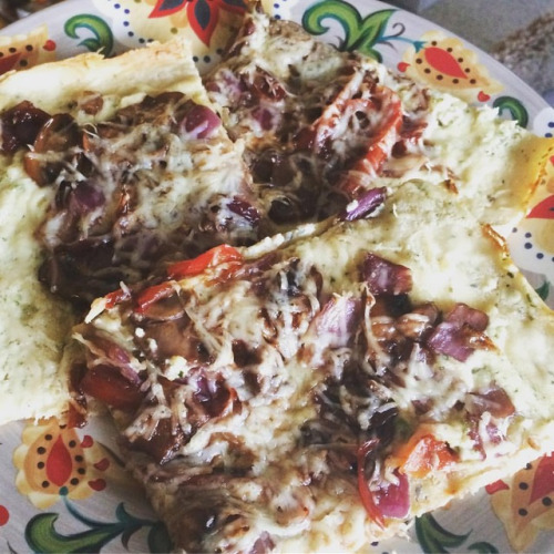 Whey/lactose free white sauce pizza with red wine veggies + parm cheese. White sauce courtesy of @kitehillfoods cream cheese.
