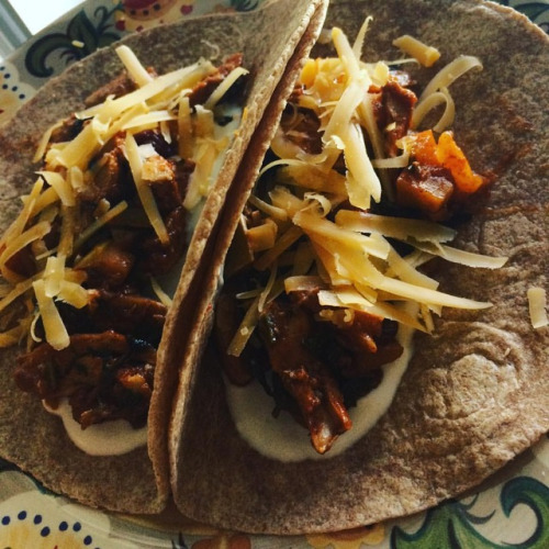 #writelifeapril Day 11: #tacotuesday! Chicken fruit tacos with @kitehillfoods plain yogurt (makes a GREAT sour cream substitute!) and aged Beemster cheese (because mine is a whey intolerance, I can have hard cheeses! Huzzah!)