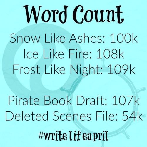 #writelifeapril Day 12: Word Count! A lot of people ask for the word counts of the SLA trilogy, so here they all are! Along with Pirate Book current wordage to compare. #snowlikeashes #books #writing #wordcount
