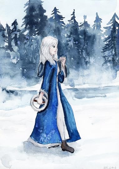 My watercolor painting of Meira from Snow Like Ashes by Sara Raasch. I’m not sure what exactly the Winterians wear, so I did my own interpretation.