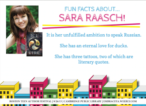 Meet Sara Raasch and 27 other awesome YA authors at the 2015 Boston Teen Author Festival on Saturday, September 26 at the Cambridge Public Library!