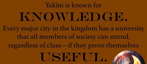 Enjoy some snippets of info about Yakim today, and tune in next Tuesday for an introduction to Yakim’s cold and seemingly callous queen, Giselle!