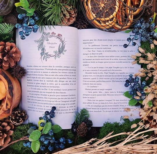 Miraldée a neuf ans, bientôt dix. Elle aime se promener dans la forêt en compagnie de Gaufrette, son loir apprivoisé, et récolter de petits trésors. Elle aime aussi travailler l’art du fil en compagnie des membres de sa famille et profiter des bons repas pris dans la grande salle à manger. Elle adore se lover avec un livre dans le coin lecture, au milieu des coussins, alors qu’il neige dehors et que le feu craque gaiement dans la cheminée.