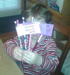 As a bonus, because I had to get this post ready, these valentines are actually done early! I won’t have to stay up on the thirteenth taping construction paper flags to valentine themed pencils. My husband is so proud.