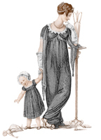 A Woman’s Half Mourning Attire:About half-way through the mourning process, a mourner would shift to the next stage: half mourning. The mourner could now wear select somber hues, including violet, mauve, brown, gray, or lavender. Jewelry made of pearls, coral, and amethysts could also be worn. Wearing rings, brooches, or pendants made from the deceased hair was common during this stage. While in half mourning, a woman could gradually resume her social activities.