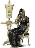 The strictest, most intense form of mourning during the Regency was that of a widow mourning her husband. Social custom forbade a widow to marry within the year following her husband’s death. The main reason for this was to ensure the woman was not with child, which would put the identity of the child’s father in question. During full mourning, it was unacceptable for a widow to attend social functions, and her social interactions were limited to receiving calls.