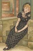 [image error]She used the Empire, Regency, and late-18th century fashions for her most of her nursery rhyme illustrations. They are full of high-waisted dresses, pinafores, mobcaps, straw bonnets, and smock frocks. Some of her illustrations are of particular interest to Regency fans, since they feature young ladies and we can get a good look at many outfits. Great inspiration for our novels!