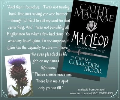 Laird Cormac Murray has witnessed how love destroyed his own father after the death of his mother, and he vows to never take a wife. Yet, when he comes upon a bewildered lass traveling alone, he finds his heart will no longer listen to his mind. In the end, Cormac risks everything to claim the love of a woman not of his time.