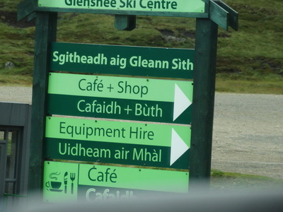 As we headed into the Highlands, we noticed a few things. First, the heather was still blooming. Second, the hills seemed rockier with fewer trees. And third, signs were printed in both English and Gaelic.