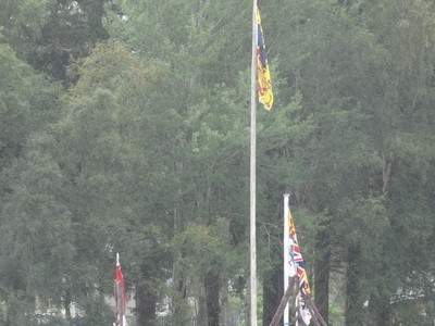 The rain soon began falling in earnest, and a few of us retreated to the clan tents, and from there to the bus where we had a wee dram of 15yr old Glen Ord whisky that had been aged in a sweet white French wine cask. To ward off a chill, ye ken.