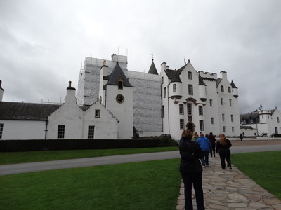 Blair Castle.It began in 1269 when the Earl of Atholl returned from Crusade to discover his neighbor, John Cumming (likely assuming the earl wouldn't be back), had built a large tower house on his land. The earl took his land, and the tower house, back from Cumming, and Cumming's Tower still stands as the oldest--and tallest--part of the castle. Our drive to Blair Castle took us over the River Tay which is a major river for salmon fishing. In fact, there was something known as a 'Salmon Charter' in the middle ages to prevent the lord of the manor from feeding his people salmon more than a couple of times per week. Salmon were so numerous, it was said you could almost walk across the River Tay on the backs of the salmon. Simply by stringing a net across the river you were assured of an abundance of salmon.