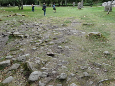 The ground was very rocky, and it was easy to see where the stones came from to build the cairns. But the standing stones??In the 1870s, the stones were interpreted as druids' temples and the landowner planted a grove of trees enclosing the three largest monuments.