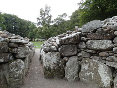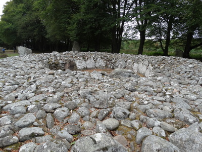 The Balnuaran of Clava is a site of a prehistoric cemetery. The monuments - a 'ring cairn' and two passage graves - were built between 3 and 4 thousand years ago.As a tomb went out of use, it was surrounded by a ring of standing stones.