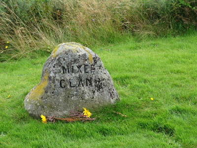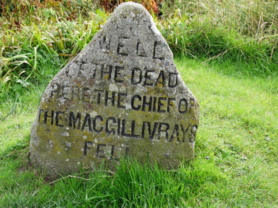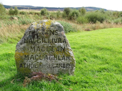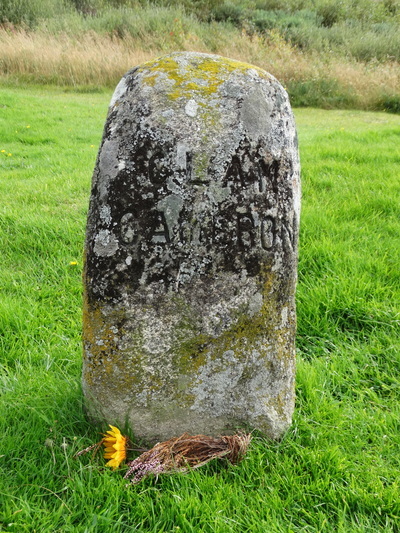 "The Battle of Culloden was fought on this moor, 16th April, 1746. The graves of the gallant Highlanders who fought for Scotland and Prince Charlie are marked by the names of their clans."