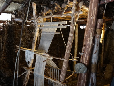 In one of the above photos, you will see a cloth loom. Natural coloring agents were used, such as dog's mercury, wild carrot, dock leaves and agrimony or yellow and orange; cleaverroot, strawberry, raspberry, blackberry and tormentil root for reds and pinks; blueberries to create blue, and various roots for browns.