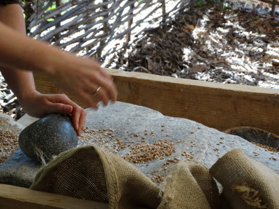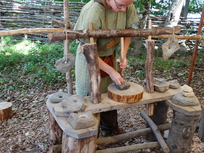 At the crannog center, we were given the opportunity to use three different types of lathes, grind grain, and operate a device for drilling holes in rocks. And our guide explained the process for making fire. (But that's tomorrow's post)