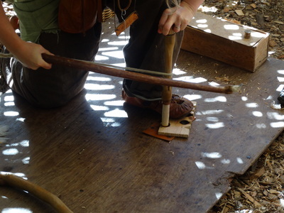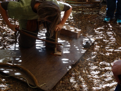 She then wrapped the string of her 'bow' around the upright stick and drew the bow back and forth. And back and forth. Until we saw smoke!