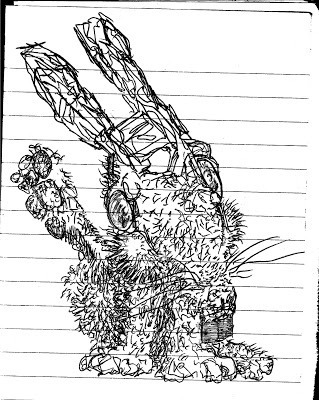 BUNNY! [I really like this bunny. There are a few of them hiding among the many little sketch pads in my cupboards, but this one is particularly fun.]