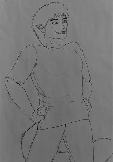 Now that Rilkin had detected his contact, he thrust the curtain aside with a great big "SATHILLA!" Sunlight shone in behind him, his energy flooding the compartment. -Pariahs, chapter 4, p. 38Drawing by Nicomelia BenallyBuy "Pariahs" here on Amazon.