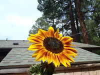 At the beginning of summer, I planted a sunflower seed. It wasn't just any sunflower seed. It was a red and yellow sunflower seed. I waited all summer for it to grow. I learned of its ways, watched it reach six feet tall and bloom with a blossom as big as my face. Look how beautiful!