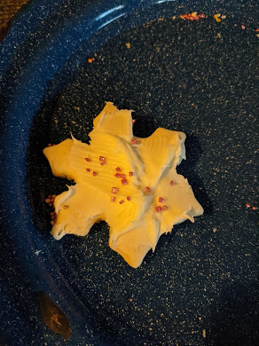 The recipe came with a frosting recipe to put on the cookie, but I don't know what happened to that. The frosting ended up looking like the oatmeal full of blood on The Golden Child. Only when I pressed it, butter came out.