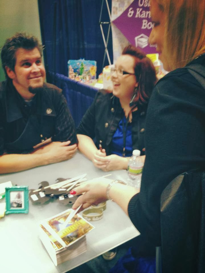 When it got close to the signing, we nervously sat down and waited for the doors to open. Within 3 minutes we had people rushing us. The moment we had a line I almost passed out. The fact that my steeplejacks that were at least two sizes too small may have contributed to that. Sherry planned a little better than me and ditched her corset for a steampunk jacket. Smart lady.