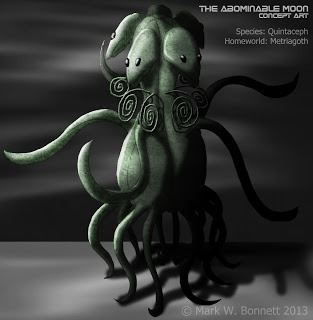 Yes, it's time for me to introduce you to a new alien within the Cynosverse. I've already made my feelings clear about how I reckon that aliens should actually look alien, and given the general tone of The Abominable Moon, it just seemed natural for it to feature an alien species with five heads.