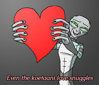 Well, yes. Yes I do, but there's more going on there than you know about, just yet. There's hints of what's going on there, in that first novel, but you don't yet know the whole story (but you will, eventually, oh you most certainly will). Besides, there's the yowason and the n'kaf (the two beasties in the pic up there) to consider, and I've made a pact with myself that any future races I come up with will resolutely not be humanoid.