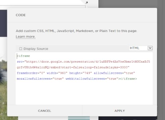 Modify the Width and HeightSquarespace will now run your presentation when a user accesses that page. There is some tidying up to do, however. For my blog, the presentation was too large, and overlapped the sidebar. You will likely need to experiment a bit with the right width/height.