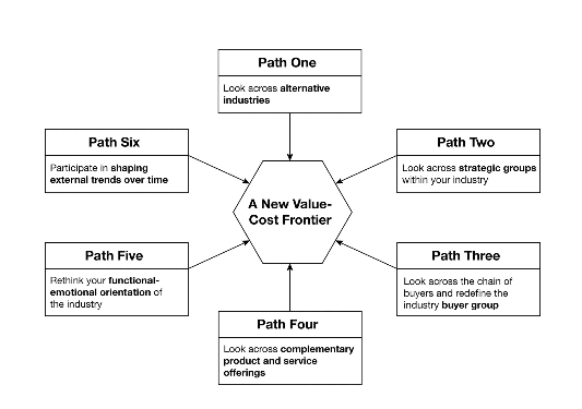 Offer a breakthrough solution for an industry’s existing problem, ORIdentify and solve a brand-new problem or seize a brand-new opportunity, ORRedefine an industry’s existing problem and solve it.To do the “shift,” we need to figure out exactly what factors allow your firm to transition into the Blue Ocean, and what are the hurdles that might prevent it from happening. They boil it down to 3 things: