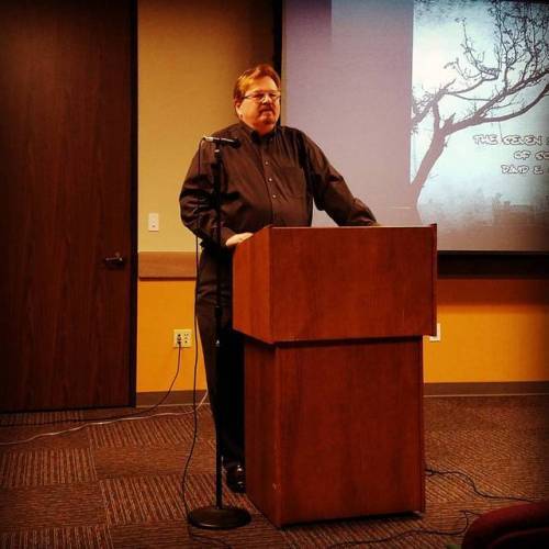 David E. Cowen reading from the Seven Yards of Sorrow. (at...