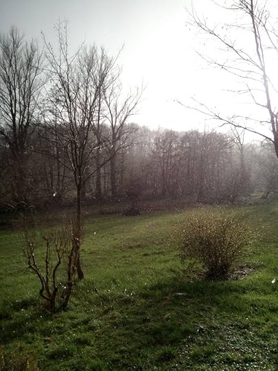 This house sits on the side of the hill, where it has sat for hundreds of years, as the cracks widen, plants push through the walls, and water courses rise through the floor, mice tunnel down through the beams. March days, hares run the meadow grass, high-skipping back and forth. Nights, foxes watch the windows for sleep and darkness to reclaim their rights.