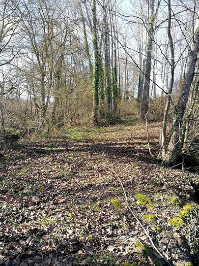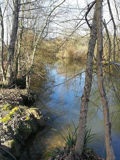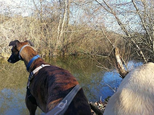 No hunting in these woods and the ground is covered in tracks and prints, of boar, badger, deer, fox and pheasant, their leavings and bones. Interesting smells distract the dogs, and walking is more like excavating. Bix is unnerved by the ‘things’ he can’t see and hangs back. Redmond just wants to get into the water. Difficult.