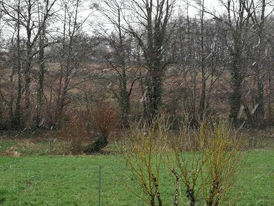 We had a brief flurry of snow here. Neither of the dogs wanted anything to do with it.