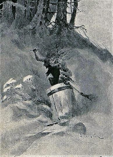 Today is also Day 3 of his Folktober challenge, and the inspiration was this illustration of Baba Yaga