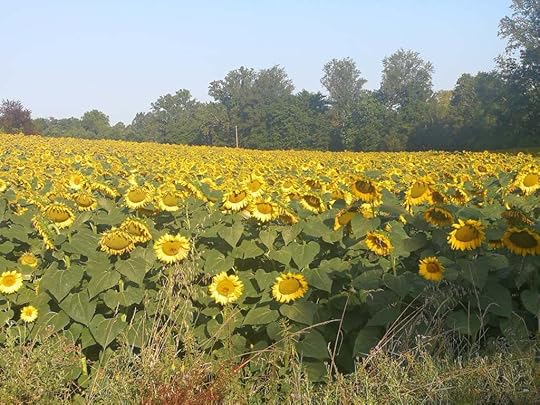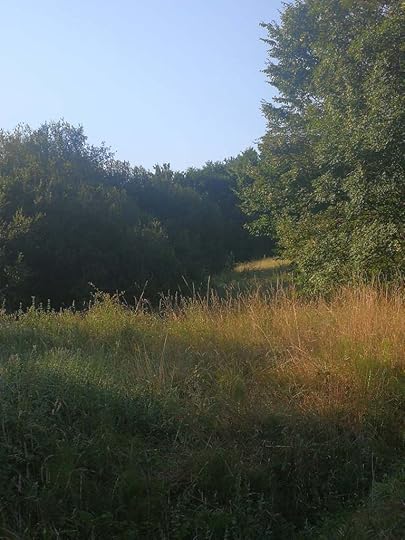 The other side of the lane, opposite the sunflowers, the woods where the boar live.