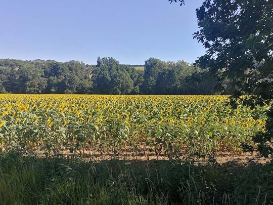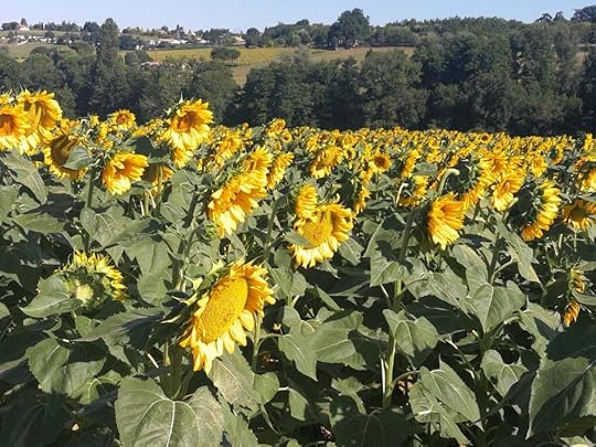 Turning east into the sun, climbing into the gentle hills, more sunflowers spread north and north and north.