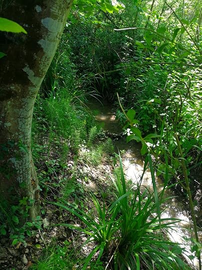 It was July 12th and she sat in the shade of a lime tree in the insect-quiet of early afternoon, trying to find what they call inner quiet. She looked at her fingers spread in the dry grass, the mosquito bites on her arms, the sleeping dogs, the heat-shimmering blue of the sky and tried to be entirely in that place, in that moment.