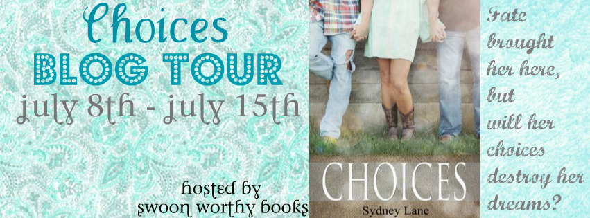 Michelle here :) The blog tour for Sydney Lane's debut novel, Choices, makes a stop here at TheSecretBookBrat HQ :) I took some time out to post my review, make sure you check it out and add Choices to your TBR Lists :)
