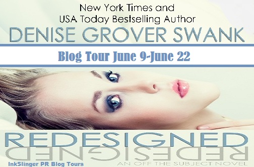 Author Bio:New York Times and USA Today bestselling author Denise Grover Swank was born in Kansas City, Missouri and lived in the area until she was nineteen. Then she became a nomadic gypsy, living in five cities, four states and ten houses over the course of ten years before she moved back to her roots. She speaks English and smattering of Spanish and Chinese which she learned through an intensive Nick Jr. immersion period. Her hobbies include witty Facebook comments (in own her mind) and dancing in her kitchen with her children. (Quite badly if you believe her offspring.) Hidden talents include the gift of justification and the ability to drink massive amounts of caffeine and still fall asleep within two minutes. Her lack of the sense of smell allows her to perform many unspeakable tasks. She has six children and hasn’t lost her sanity. Or so she leads you to believe.You can find out more about Denise and her other books at: www.denisegroverswank.com.Links:Buy Link: http://www.amazon.com/Redesigned-Off-Subject-2-ebook/dp/B00CKXAIAM/ref=sr_1_1?ie=UTF8&qid=1370663176&sr=8-1&keywords=Redesigned+denise+grover+swank Blog: http://denisegroverswank.com/blog/ Website: www.denisegroverswank.comAuthor Facebook: https://www.facebook.com/DeniseGroverSwankTwitter: https://twitter.com/DeniseMSwankNovel Goodreads: http://www.goodreads.com/book/show/17788557-redesigned Author Goodreads: http://www.goodreads.com/author/show/4921525.Denise_Grover_Swank