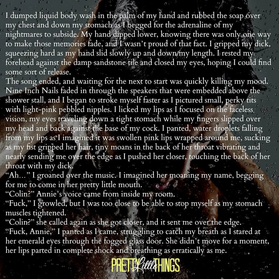 Chapter 1 - AnnieI knocked on the office door that sat ajar as I watched Colin at his desk, his suit jacket off and sleeves rolled up, exposing the large cross tattoo on his forearm, as he stared at his laptop screen. His dark hair was disheveled, and a day’s worth of stubble shadowed his jawline. Beside his laptop was a black gun that was always within reach. “Busy,” he snapped angrily, not bothering to glance in my direction as I glared at him. “Good. I’ll stay out of your way. Don’t wait up.” I turned to hurry down the flight of stairs toward the second floor, but he called after me before I could make my getaway. “Wait. Where the hell are you going?” I rolled my eyes and groaned like a child as I slowly traipsed back to his office and pushed the door open. “Out with some friends.” His eyes ran up and down my body before he shook his head in disapproval, and his gaze dropped back to the computer screen. “Not dressed like that. Go change.” “You don’t get to tell me what to wear. I’m seventeen, and you’re not my father.” I folded my arms over my chest as my eyes narrowed, ready for a fight. With a sigh, he pushed back his chair and slowly stood to his full six feet in height, making me feel impossibly small. He rounded the desk as he pulled up his zipper. That’s when I noticed the mass of blond hair from a girl kneeling behind his desk. Gross. He came to a stop in front of me, forcing me to tilt my head back. It was challenging to glare at someone from this angle and still look menacing. “Change your outfit, or you’re not leaving.” “Watch me.” I pivoted on my toes, my long blond curls hitting him in the chest. Two muscular arms banded around my waist, pulling my feet from the ground as he held me against him from behind. “Annie, I’m a very fucking busy man,” he growled next to my ear. “Do not pull this bullshit tonight. This is not a fucking game. Change your clothes, or I will lock you in your room. Do I make myself clear?” “Crystal,” I bit out between clenched teeth as he lowered me to the ground. To say Colin was overprotective of me was an understatement, but he was equally annoyed by my presence, which made dealing with him a constant game of Russian roulette. “Asshole. You messed up my hair,” I muttered as I made my way down to the second floor and into my bedroom. I slammed the door loud enough to rattle the walls, but I knew he probably didn’t even hear it upstairs. That was one of the perks of living in such a large house. I glanced at my reflection in the full-length antique mirror across the room, running my finger under my lower lip to fix my smudged gloss. My hair was pale blond and curled perfectly down my back. I wore a low-cut purple V-neck T-shirt that hugged my curves and made my green eyes pop, paired with cutoff jean shorts that probably cost more than the average person’s week-long vacation. Well hidden and disguised was the credulous little girl that I used to be when we came to live in Connor’s house. I pulled off my shirt and tossed it on the ground as I stepped inside my walk-in closet. Pulling out a sensible white eyelet dress that covered anything Colin would find offensive, I cursed under my breath. I slid my shorts down over my hips and kicked them off against the wall as a knock came at my door. “Go away,” I yelled, and I heard the deep rumble of his laugh as he slowly opened the door and stepped inside my room. He had his hands shoved in his pockets as he looked me over in matching black bra and panties trimmed with delicate lace. “I’m sorry. I have enough on my plate right now. With Connor sick, I have to pick up his work slack. I can’t be worried about you running around town looking like…” He gestured with his hands, and for the first time since I could remember, Colin was at a loss for words as he took me in.“I’m just hanging out with some friends. You guys want me to blend in; this was me blending in. No one at school dresses like this.” I tossed my hands in the air, hating that at only nineteen he felt he could tell me what to do. He was taking his role as my pretend brother a little too far.The loud clacking of heels on the wooden floor caught his attention, and he turned around to face bobbing head from under desk girl.“I’ll just be a minute, and then we can leave. You mind grabbing my keys from the office?”“Sure.” She smiled sweetly, her lips coated with a fresh layer of red, before disappearing up the stairs to the third floor. Colin turned his attention back to me, his jaw clenched in frustration. “First of all, you wear uniforms at school. Second, you’re a Blakely now. You need to dress the part. This is a very small town, and people talk. We’ve spent years trying to blend in, and now you want to walk around looking like a whore just to prove you’re what? A grown-up?” His voice rose with every word, as did my temper. I crossed the room in large strides and poked my finger against his hard chest, but he didn’t budge from the doorway, and the shadows from my darkened room made the chiseled contours of his face even more menacing. “You don’t seem to have a problem with the women you fuck dressing like whores. Why do I have to dress like a librarian?” His hand was in my hair, fisting and tugging back ever so slightly, my chin titled up toward his face, which was now only an inch from mine. “If you don't dress like a lady, I will stop treating you like one, and that will be more fun for me than it is you, I promise.” He swallowed hard, and my lips parted in shock as I struggled to keep my breathing under control. It wasn’t a threat—it was a warning.The hammering of my heart in my ears blocked out the sound of heels on hardwood, and it wasn’t until bobbing head from under desk girl gasped, “Colin?” that we noticed her presence. “Sorry, sweetheart. Just teaching my little sister here a lesson on being a lady.” His b