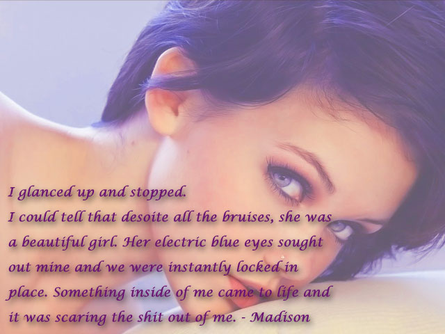“Down boy!” Jess slapped me on the shoulder which jolted me from my trance. I let go of both her lip and her hand and took a few steps back. I was in so much trouble and I needed to put some space between us. The girl that I had sketched numerous times as my Psyche, the girl that served as my muse in the thesis I was working on, had literally walked out of my head and into my life. And unfortunately, as much as I wanted to explain to her, to show her all of my drawings that looked nearly identical to her, to tell her that I had envisioned her so that it must be some kind of fate that brought us together, I knew that I needed to leave her the hell alone. She was exactly what I had always imagined her to be ~ beautiful, pure, and innocent. I knew in the way she looked at me, that she felt a connection too, it was undeniable. But I had to do what was right for her~ I had to stay away from her. I would only corrupt, disappoint, and hurt her; after all, I was my father’s son. I wouldn’t do to her what he had done to my mom. I was the only one that could save her from me.