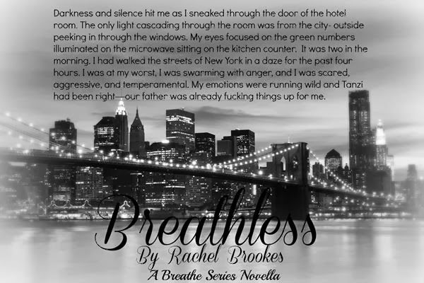 Breathless, although a novella, fills in a few pieces and sets up the story foundation for the third and final book, Breathe Again. It allows us to get to know Tate one-on-one, and what makes him tick. It also gives us a glimpse of the broken man he was before Savannah walked into his life and turned it right side up.