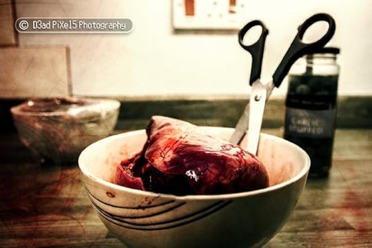 B: Ooooh allsorts. I love creepy imagery. Something that makes you think "What the hell is that"? I suppose one of the biggest influences has to actually be a video game. I remember the first time I played Silent Hill on the playstation one. It was such a dark creepy game. And when the second one came out it was even creepier. Something lurking in the shadows you cant quite see. Old decaying scenery spattered with blood. I also like to incorporate pretty with disgusting - It's a nice contrast. Pretty girl, pig's heart. You know the kind of thing Mr Tinsley :)